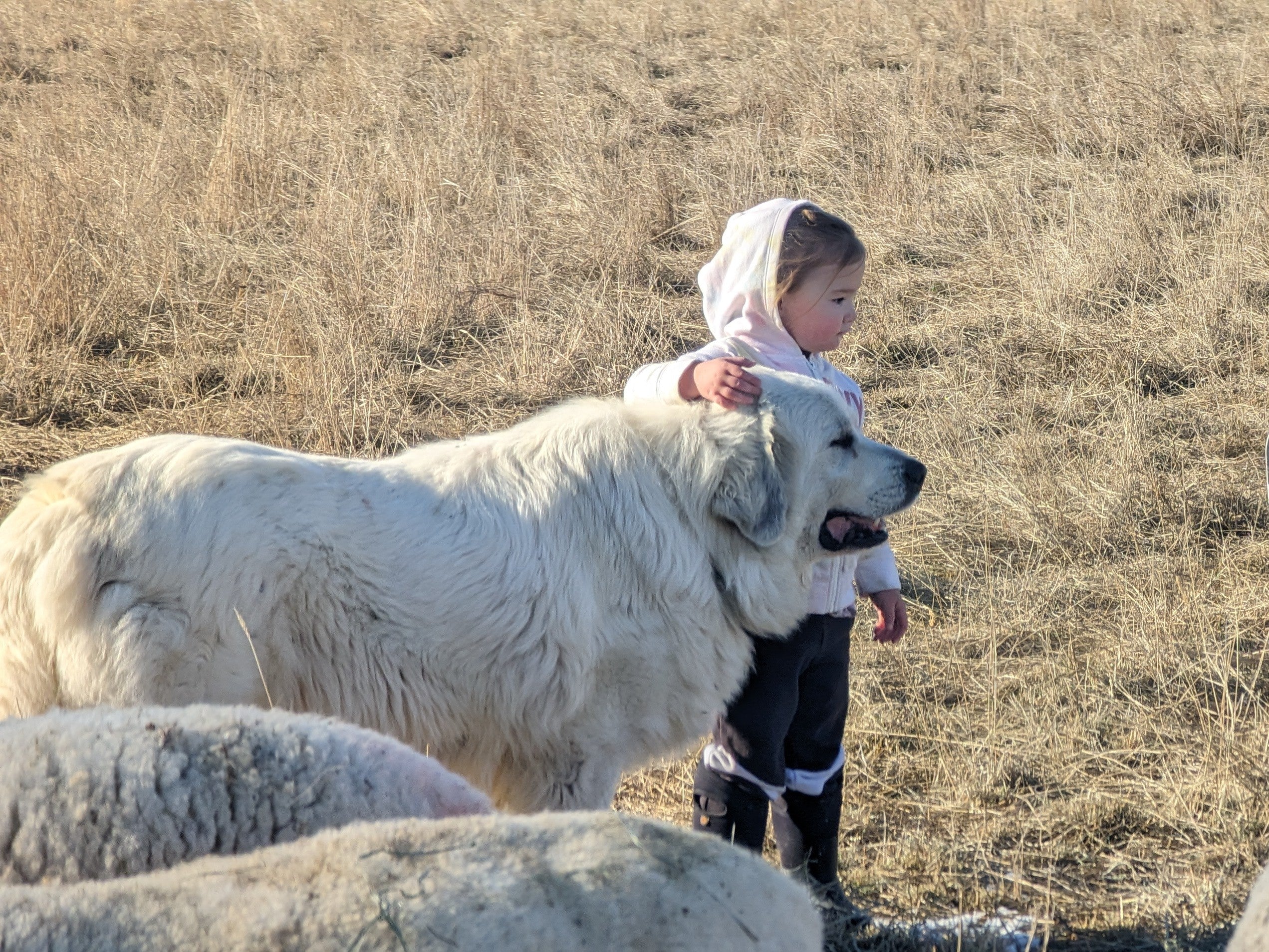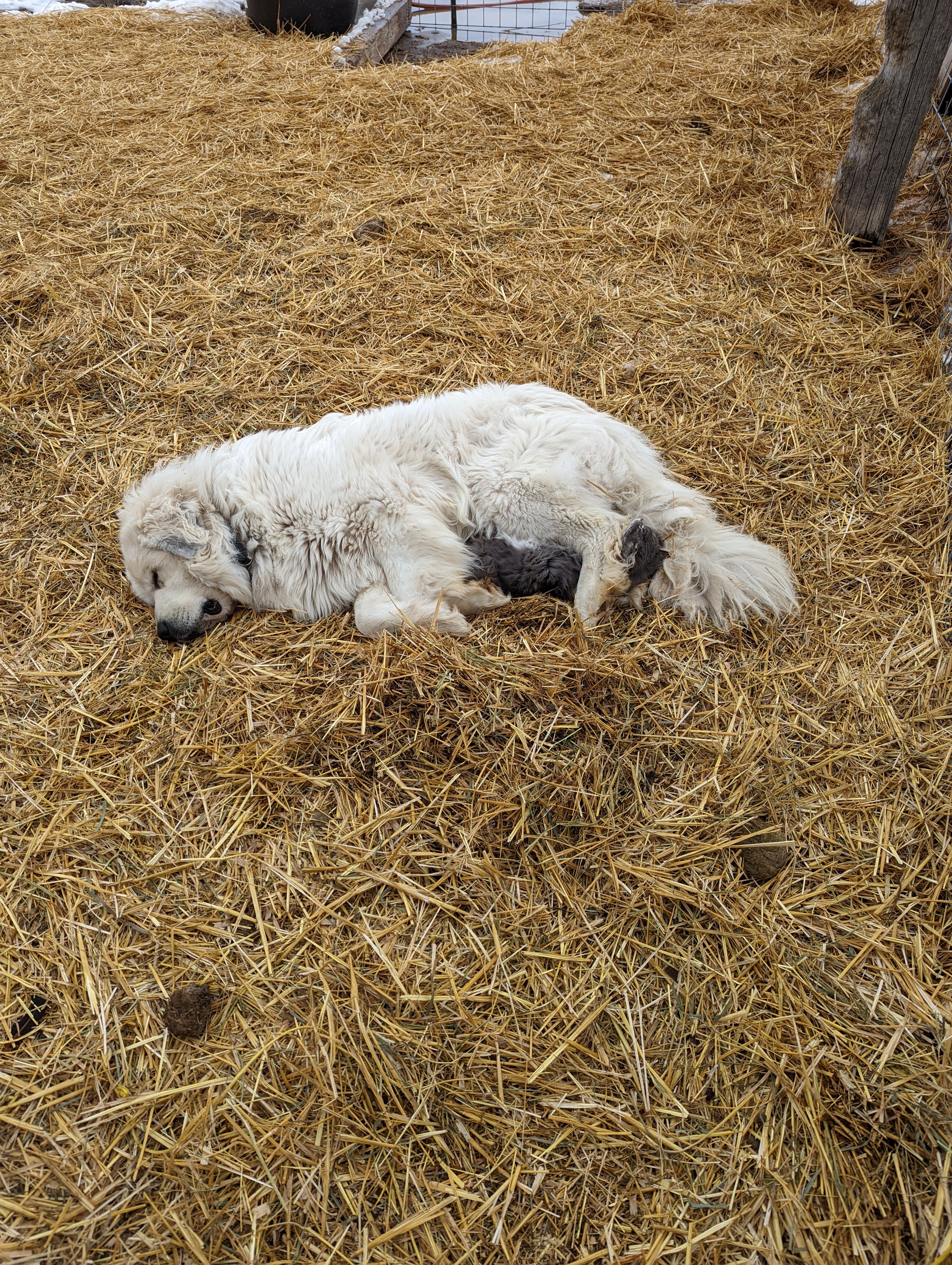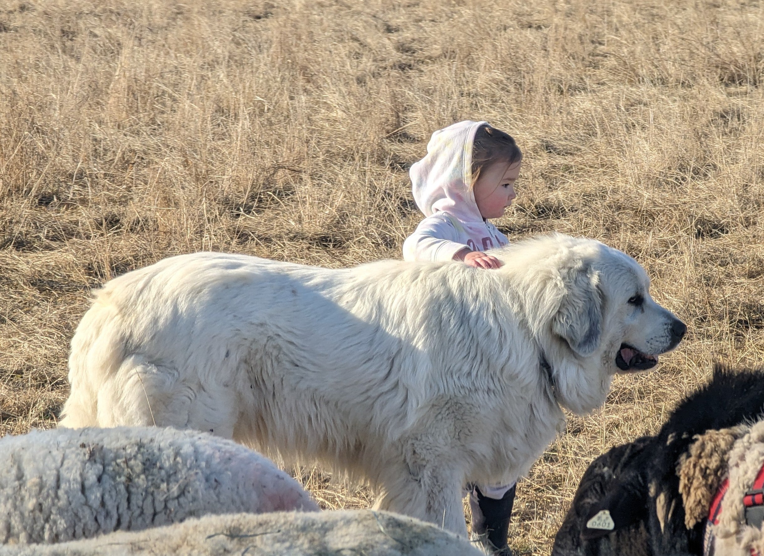 Parents are currently working as livestock guardian dogs protecting the sheep and poultry on our 80 acre farm. These Pyrenees are our farm and family guardians.